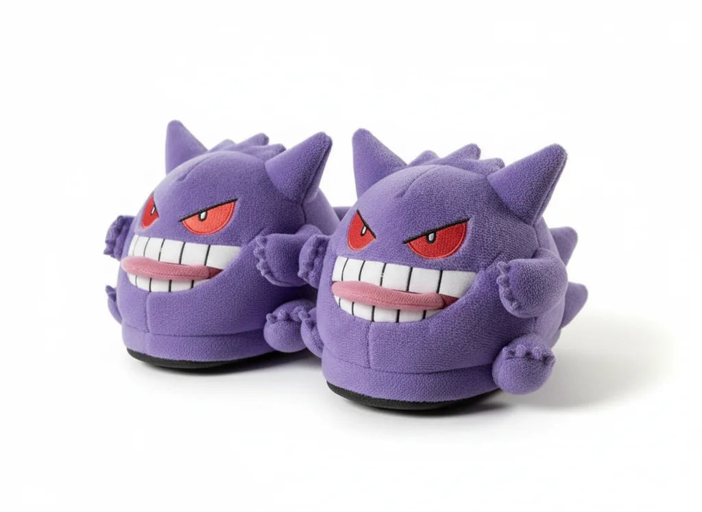 We recommend spot cleaning with a damp cloth and mild detergent to keep your Gengar slippers looking fresh and spooky-cute. Air dry them away from direct heat to maintain their plushness.
